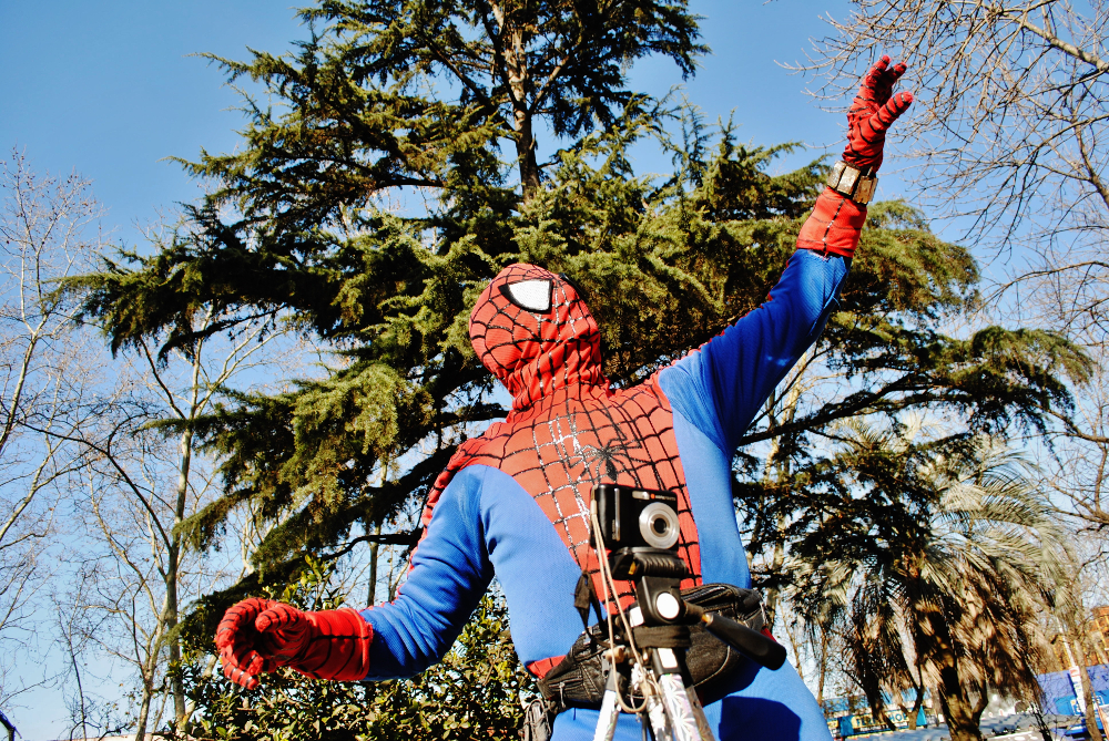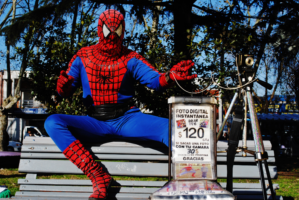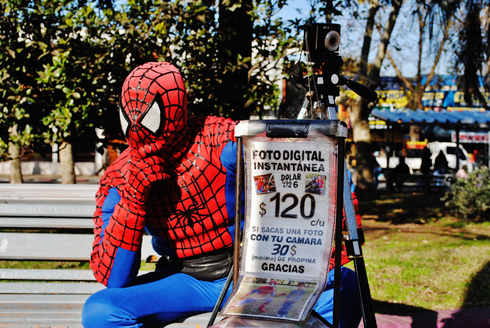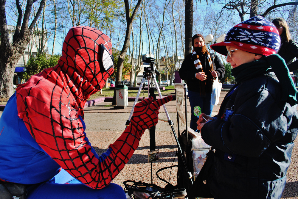 Y es que debajo de esa máscara encontré a un hombre sensible y amable, que a diferencia de casi todo el resto de la sociedad ésta es la única máscara que tiene. Llegó a mi ciudad un hombre que todos los días se pone el traje del Hombre Araña y sale a laburar…